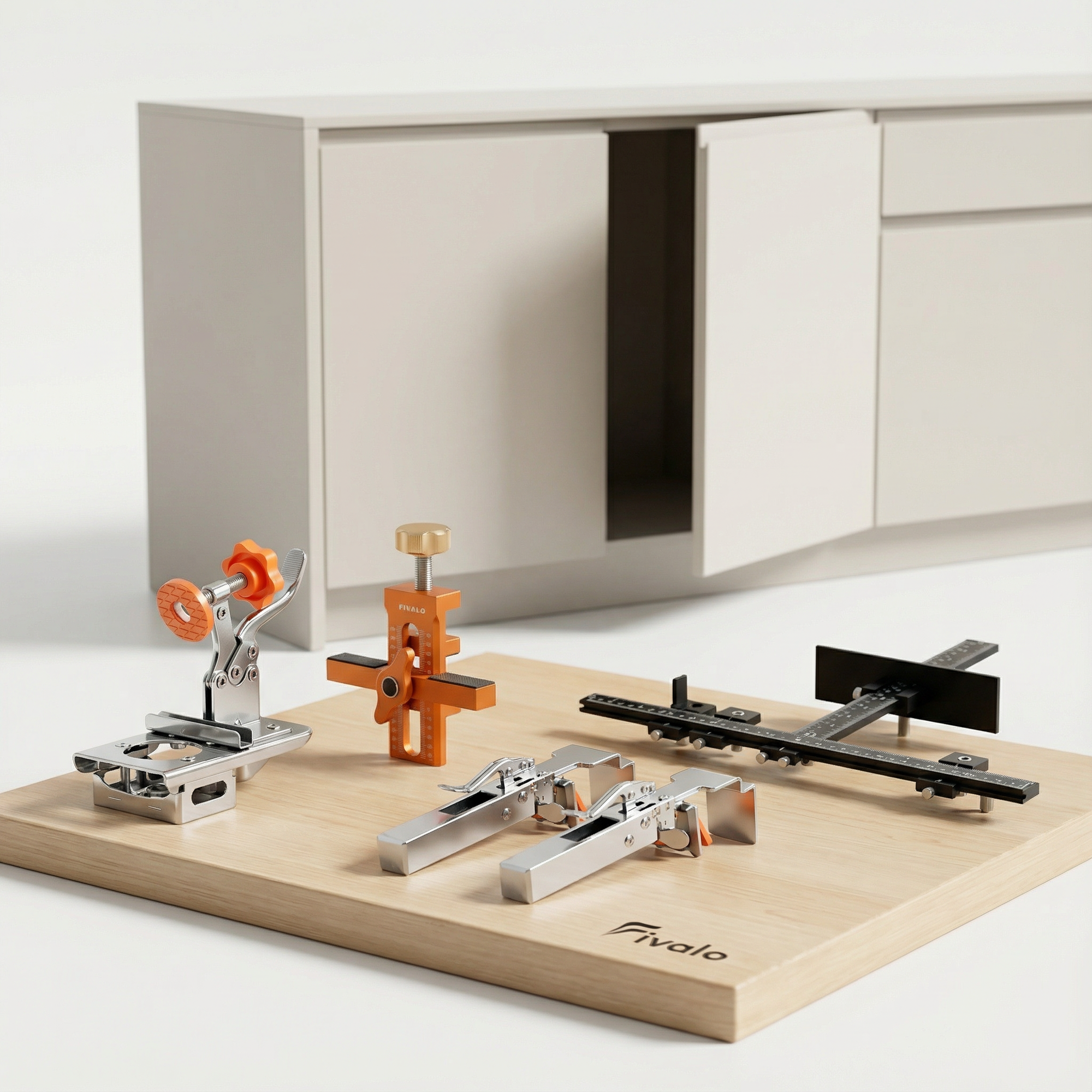 Make cabinet door mounting simple and accurate with the Fivalo™ 2-in-1 Cabinet Door Jig. Align and support doors easily—great for hinge alignment and positioning.